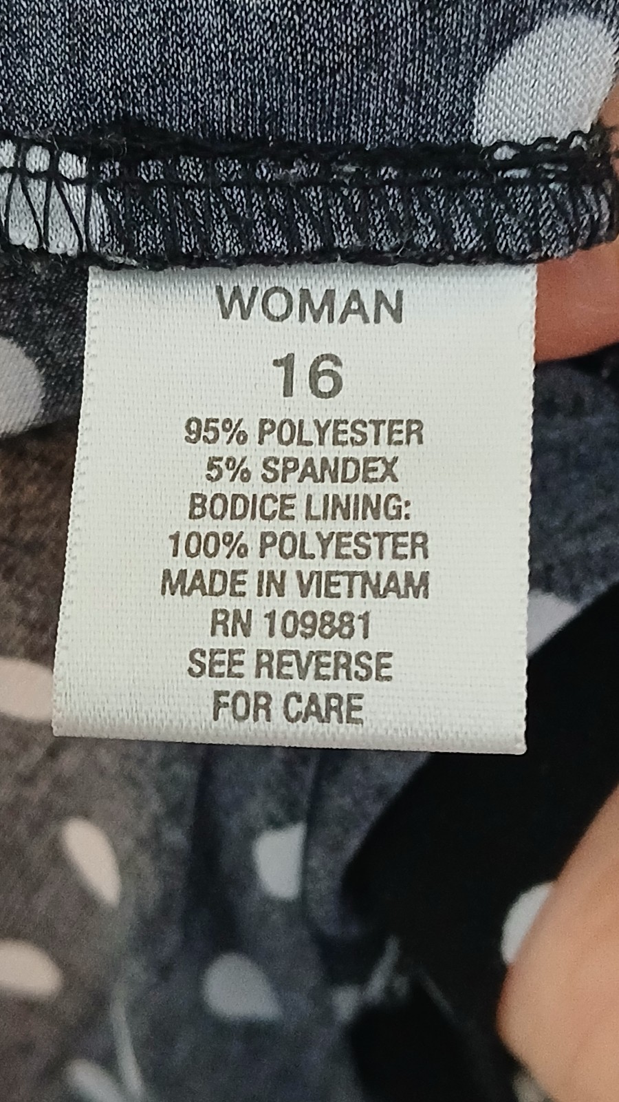 Pit to Pit 21" Length 41" This Polka Dot Dress in size 16 features a classic V-neck and 3/4 sleeves, making it a versatile option for various occasions. The black and white color scheme and midi length give it a stylish and polished look, while the pullover closure and machine washable material make it easy to care for. Made from a blend of polyester and spandex, this Dress Barn dress is designed to be comfortable and flattering for any woman's body type. Perfect for travel, parties, casual outings, or business meetings, this dress is a must-have for any wardrobe.