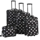 Description This beautiful deluxe 4-piece expandable luggage set is manufactured with a patented heavy duty EVA-molded hi-count fabric. This set is perfect for the serious and experienced traveler! Manufactured with the very best heavy duty polyester and PVC backing, this luggage set is designed for the traveler on the go and comes with three expandable uprights and a flight tote bag. It comes packed with features including: an inside retractable handle, EZ-Roll in-line skate wheels, back zippered secured pockets, top and side comfort grip handle, stability bars at the bottom to avoid tilting, and locks & keys. Upright features include: Clear in-line skate wheel system for smooth ride Push-button self-locking internally stored retractable handle system Ergonomic and comfortable padded top and side grip handles front full size zipper-secured pockets Three internal organizational pockets for all your traveling needs Each upright's interior is fully lined with a durable and elegantly imprinted lining Elegant silver pewter heavy duty industrial hardware Carry-On Flight Tote Bag features include: Elegantly imprinted full interior lining Detachable and adjustable non-slip shoulder strap Spacious main compartment Maximum strength industrial hardware 19-inch Carry-on Upright: 20 inches high x 12. 5 inches wide x 7. 5 inches expandable to 10 inches deep (with wheels). 6 lbs. 24-inch Upright: 24 inches high x 16 inches wide x 10 inches expandable to 12 inches deep. 8 lbs. 28-inch Upright: 28 inches high x 18 inches wide x 12 inches expandable to 14 inches deep. 9 lbs. Carry-On Flight Tote Bag: 14 inches wide x 11 inches high x 5 inches deep – 1 lb. Carry-on Upright: 20"x 12. 5"x 7. 5" (with wheels) 24-inch Upright: 24"x16"x10" 28-inch Upright: 28"x18"x12" Tote: 14"x11"x5" large front pockets Skate wheels Full lining Expandable