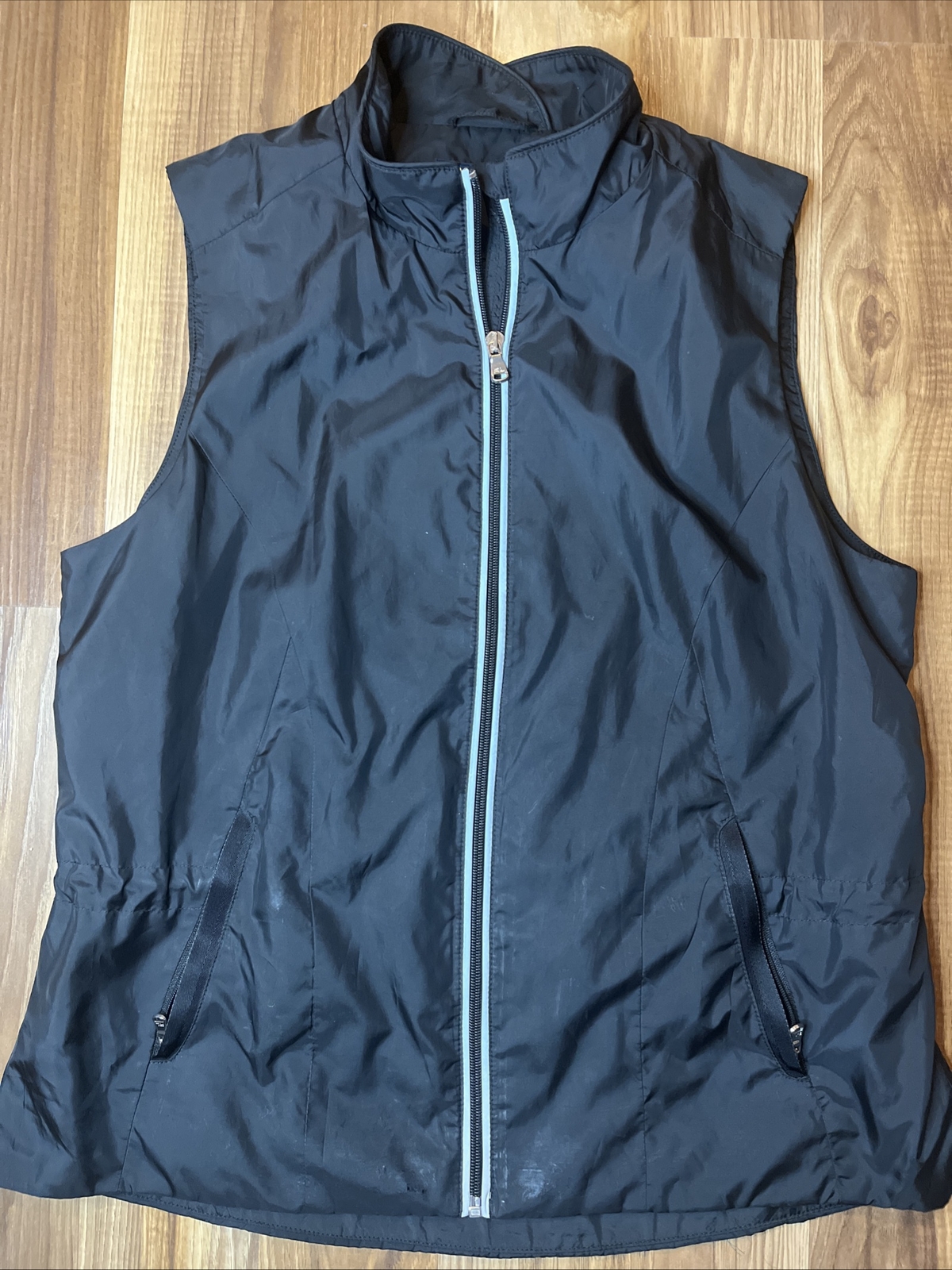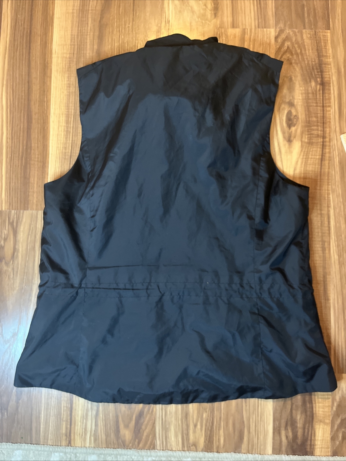 This Polo Ralph Lauren Full Zip Windbreaker Vest in women's size large is a stylish and practical outerwear option. Made from lightweight polyester, this sleeveless vest is perfect for layering during the transition seasons. The black solid color and zip closure add a sleek touch to this windbreaker, while the pockets provide functionality. Perfect for a casual day out or a round of golf, this vest combines fashion and practicality effortlessly.