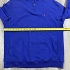 Polo Ralph Lauren 1/4 Zip Fleece Sweatshirt Men’s Large Blue / Red Pony / Red Stripe Collar Pockets Very good condition. Gently used. See photos for detailed condition and measurements. Fast and secure shipping daily.