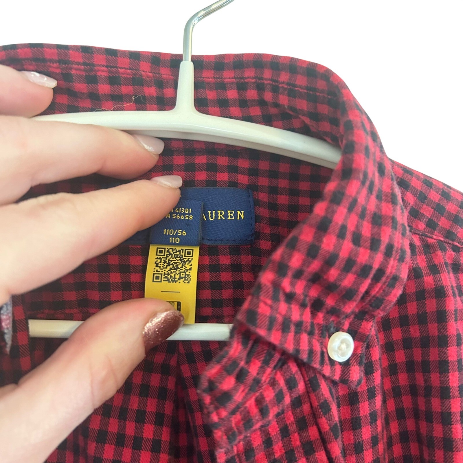 Polo Ralph Lauren long-sleeve button-down shirt in a classic red and black gingham pattern. Crafted from 100% cotton, this sport shirt features a button-down collar, buttoned cuffs, and the signature embroidered pony logo on the chest. The timeless checkered design makes it a versatile piece for both casual and semi-formal occasions. Measurements: • Pit to Pit: 13" (26" doubled) • Length: 18.5" Keywords: Gingham, Checkered, Preppy, Classic, Cotton, Sport Shirt, Holiday, School, Casual, Traditional, Timeless, Buffalo Check Brand: Polo Ralph Lauren Product Type: Button-Down Shirt Material: 100% Cotton Color: Red, Black Pattern: Gingham/Check Sleeve Length: Long Sleeve Collar: Button-Down Closure: Button Front Accents: Embroidered Logo Country of Manufacture: India Style: BDPPC LS SPT-SHIRTS Season: All Season All items come from a smoke free, golden retriever dog friendly home. All of items unless NWT or Dry Clean Only are washed with Tide. We try our best to disclose any flaws with items, if we miss something please reach out and let us know.