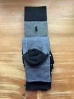 Elevate your sock game with these stylish Polo Ralph Lauren dress socks. Made of a comfortable blend of polyester and spandex, these mid-calf socks feature a polka dot pattern in gray and black, adding a touch of classic elegance to your outfit. Perfect for any occasion, from casual to formal, these socks are lightweight, breathable, and machine washable for easy care. With a size of 10-13 and a regular size type, these socks are perfect for men who love to walk, golf, or dance. The socks also feature the iconic Polo Ralph Lauren logo, adding a touch of luxury to your look. Get ready to rock any season, whether it's winter, summer, fall, or spring.