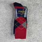 New in package. Fits shoe size 6-12 1/2. Sock size 10-13. Red argyle, gray, and navy blue. 3 pairs.