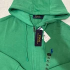 Elevate your activewear collection with this two-piece Polo Ralph Lauren tracksuit in a stunning green color. The set includes a hoodie and joggers, both made of comfortable and lightweight fleece material. The pullover closure and adjustable waist ensure a perfect fit for any occasion, whether it's a casual day out or a formal event. The tracksuit features a solid pattern with accents of a zip and the iconic Ralph Lauren logo. It's machine washable and easy to care for, making it a perfect choice for all seasons. The set is ideal for various activities, including cycling, running, gym training, and more. Get ready to look stylish and comfortable in this Ralph Lauren tracksuit.