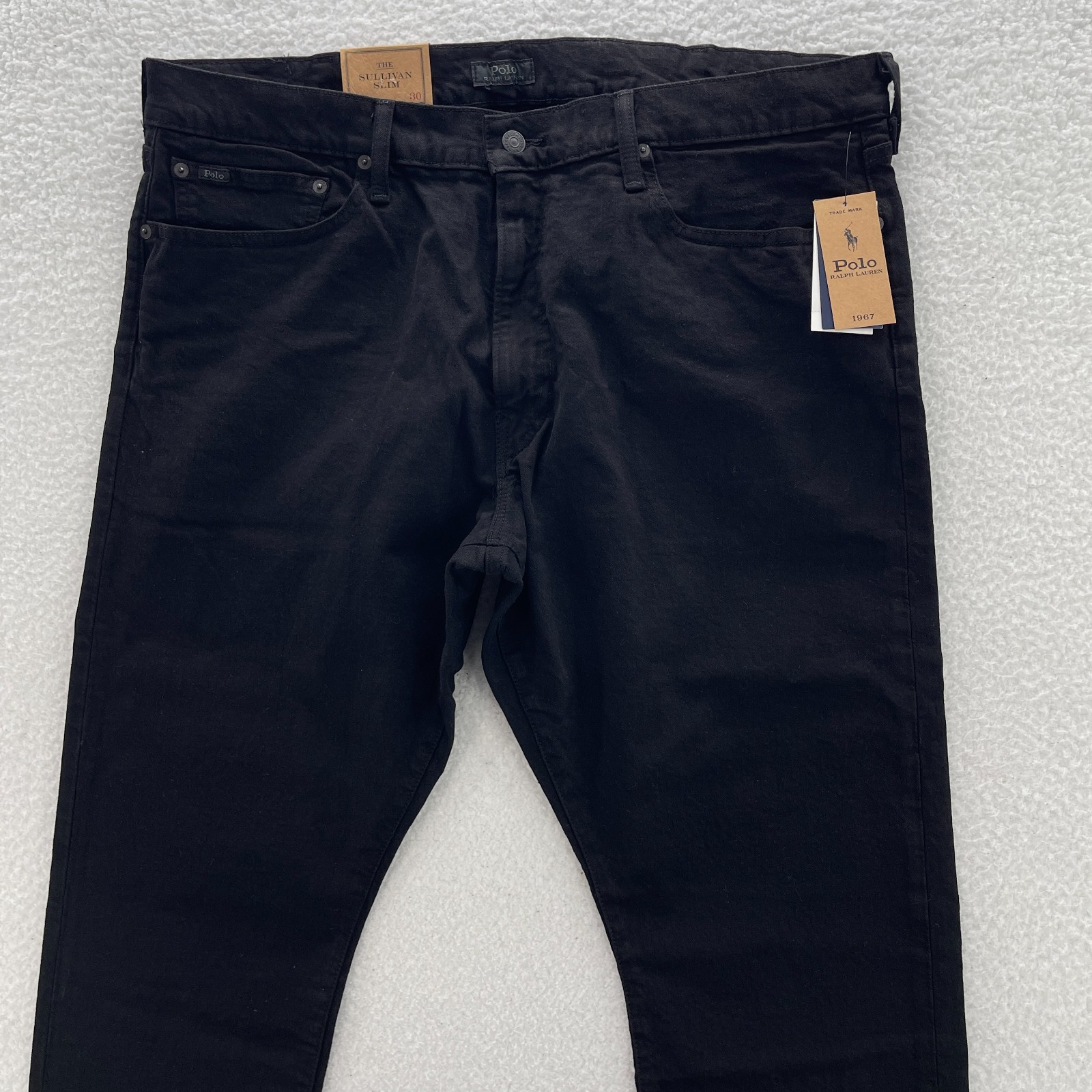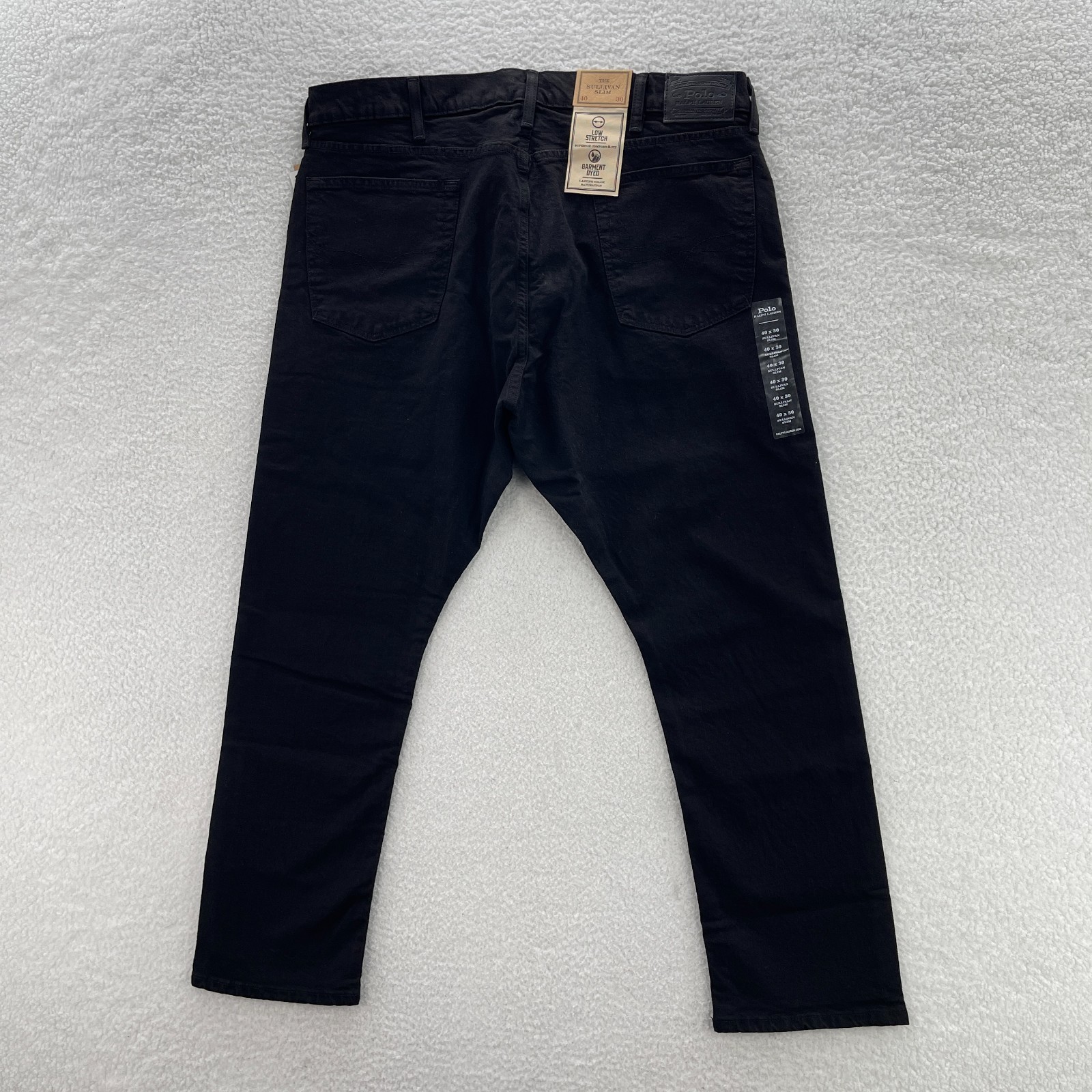 Polo Ralph Lauren Jeans Mens 40x30 Black Sullivan Slim Dark Wash Stretch Preppy Sizing in the title and item specifics are based on what the tag says. Measurements can be seen in the photos.