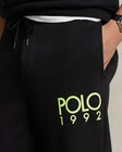 In heavyweight fleece, these jogger pants feature a vintage-inspired logo as well as our signature embroidered Pony. DETAILS All sizes have a 29.25" inseam. Size medium has a 32.5" waist that expands to 40" and a 12" rise. Ribbed drawstring waistband. Sewn fly. Side on-seam pockets. Back right patch pocket. Flocked “Polo 1992” print at the left leg. Ribbed cuffs. Signature embroidered Pony at the back pocket. Shell: 65% polyester, 35% viscose. Ribbed trim: 64% polyester, 32% viscose, 4% elastane. Machine washable. Imported. Model is 6'1" (185 cm) and wears a size medium. Style Number: 656871