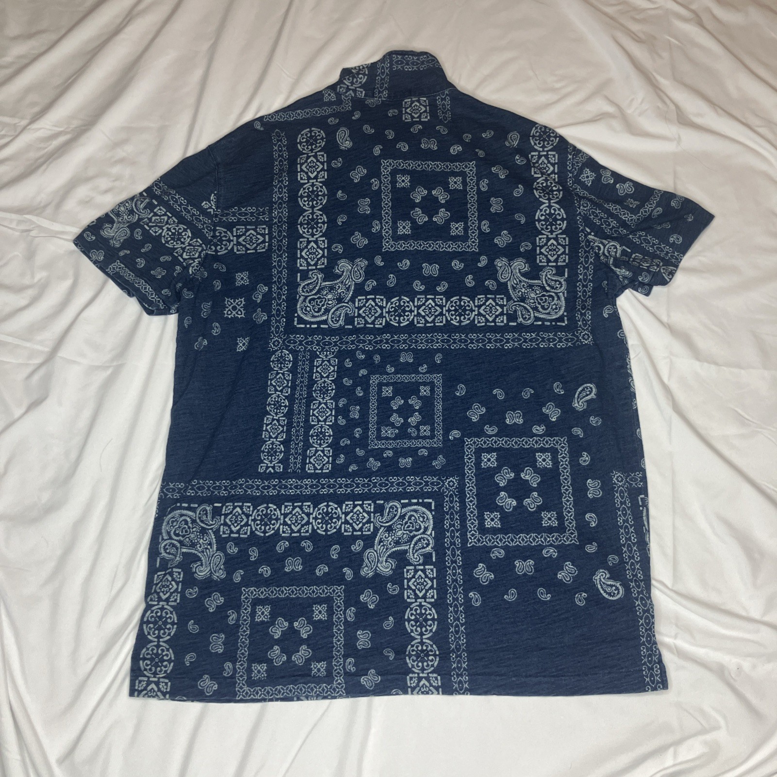 The Polo Ralph Lauren Men's Bandana Paisley Print Short Sleeve Polo Shirt in size Large is a stylish and comfortable choice for any man's wardrobe. Made from 100% cotton, this lightweight and breathable shirt features a classic collared neckline and short sleeves, perfect for warmer weather. The paisley print adds a touch of nature-inspired charm, making it suitable for various occasions. The regular fit ensures comfort and ease of movement, while the machine washable fabric makes it easy to care for. Ideal for those looking for a versatile and high-quality polo shirt from a trusted brand like Polo Ralph Lauren.