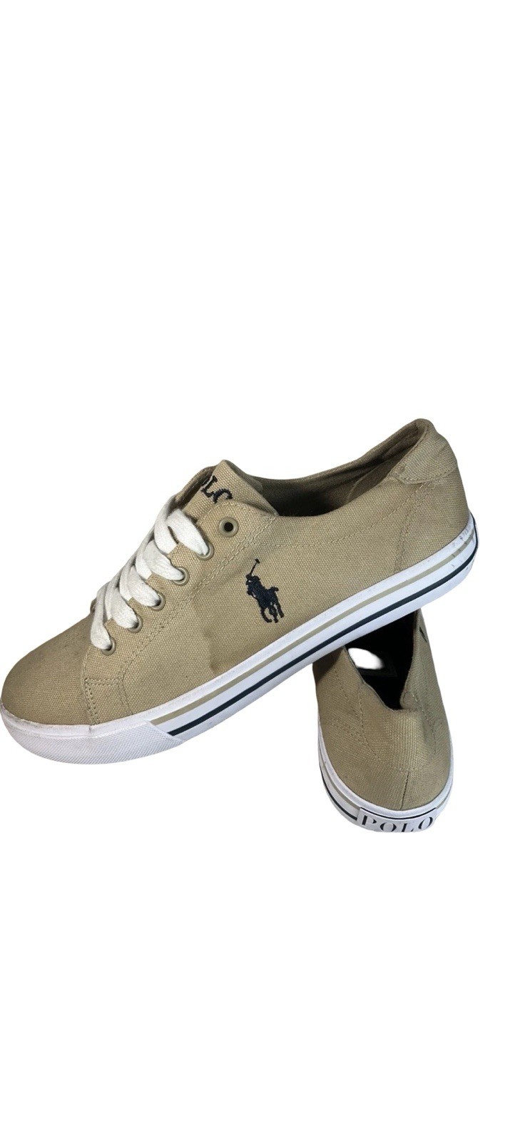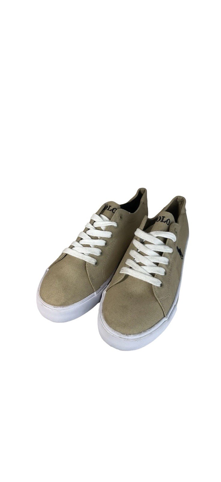 Elevate your casual style with these Polo Ralph Lauren Cantor fashion sneakers. These shoes feature a khaki/tan canvas upper material with a solid pattern, perfect for any casual outfit. The medium width and size 7 US shoe size make them a comfortable fit for any man. The Polo Ralph Lauren brand is known for its quality and style, making these sneakers a must-have for any fashion-forward man. Made in China, these athletic-type shoes have a man-made sole and medium (D, M) shoe width. Complete your casual look with these stylish and comfortable Polo Ralph Lauren Cantor fashion sneakers.