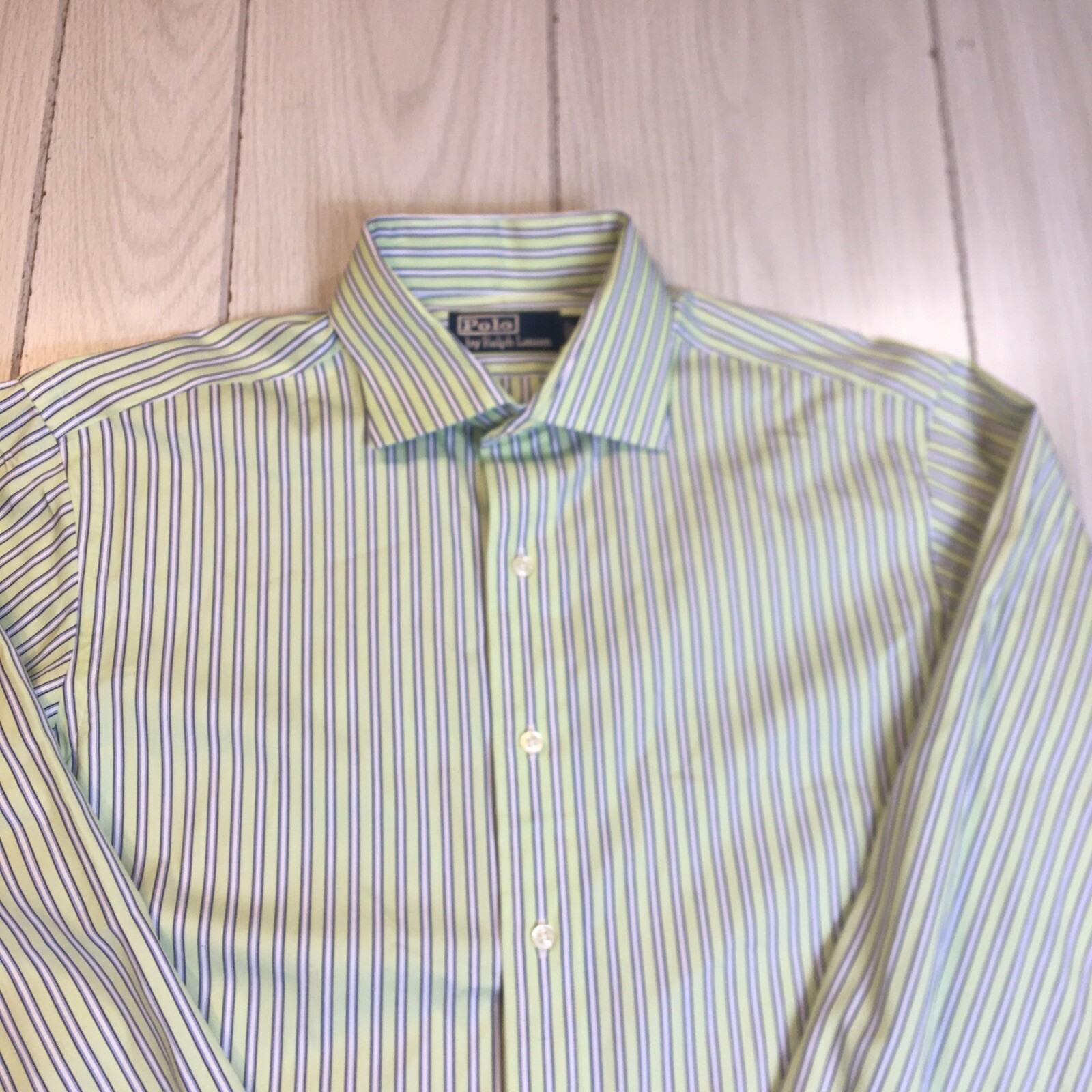 Polo Ralph Lauren Button Front Shirt Men's Striped Green 100% Cotton 16 34/35 34#580