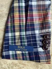 Soft Knit Featherweight Unconstructed Gentlemen Elevate your style with this classic Polo Ralph Lauren men's blazer in a large plaid pattern. The sport coat is made of soft, machine-washable knit cotton with a cotton lining for added comfort. It features a notch lapel style, single-breasted front with three buttons, and single-vented back. The jacket is in excellent condition and is perfect for any occasion, from business meetings to weddings. The blazer is a regular fit and is true to size.