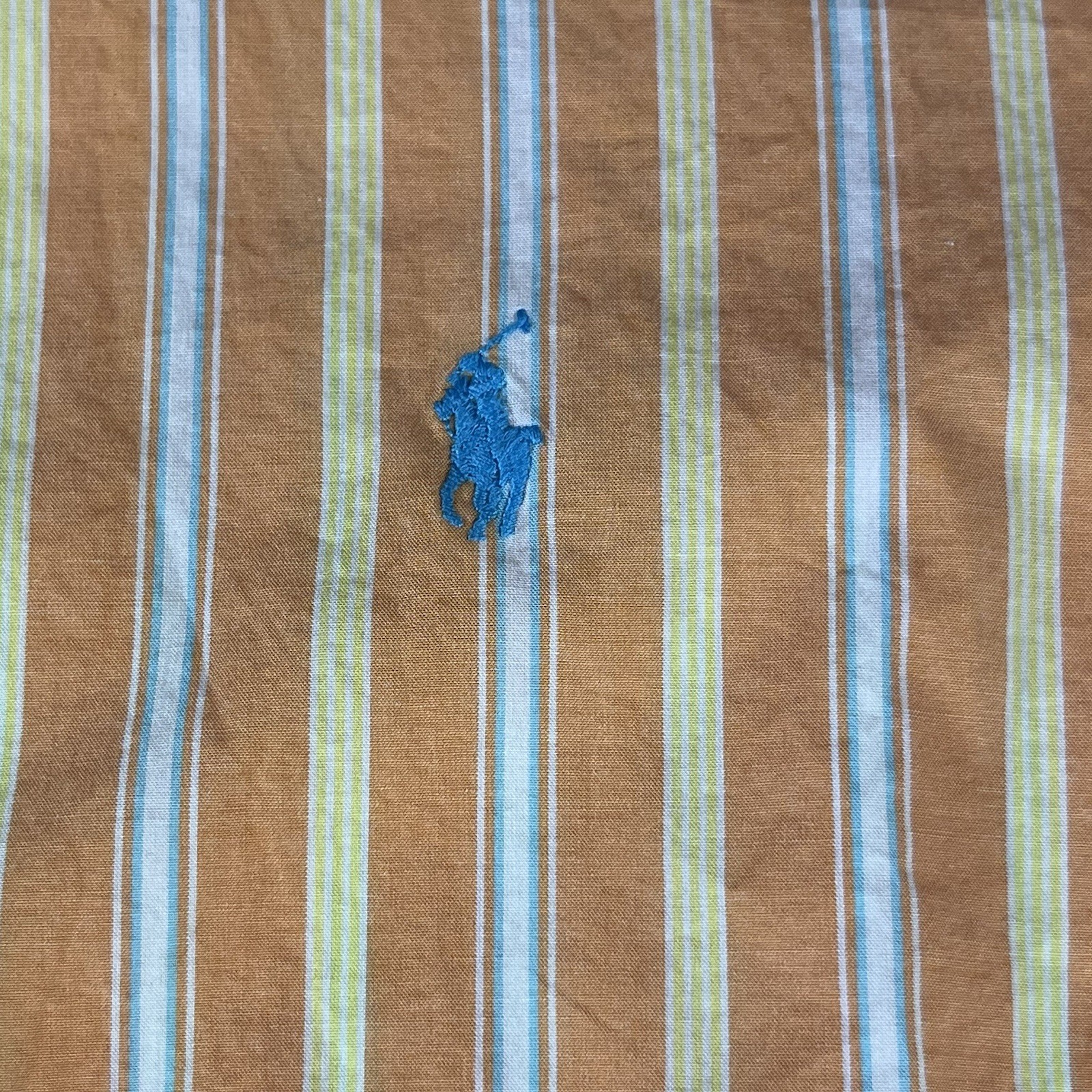 Elevate your wardrobe with this stylish Polo Ralph Lauren men's button-up shirt. The orange striped shirt with a blue pony embroidered accent is perfect for any occasion, whether it be travel, casual or business. The shirt features a collared neckline, long sleeves, and a button closure. Crafted from lightweight and easy-care cotton material, this shirt is perfect for all seasons, including summer, fall, and spring. The shirt is machine washable and has a chest size of 48 inches. This regular fit shirt is a classic and colorful addition to any designer-themed wardrobe.