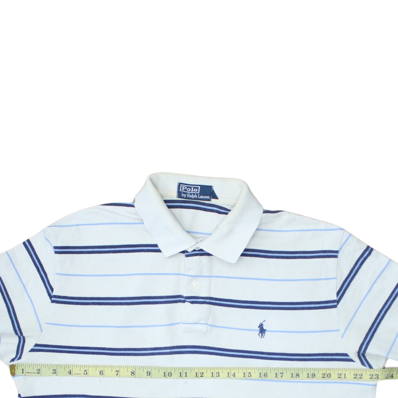 ‹ ‹ ‹ ‹ ‹ ‹ ‹ ‹ › › › › › › › › Polo Ralph Lauren White Blue Stripe Polo Shirt Men's Large Embroidered Pony Logo Casual Top Product Details Brand: Polo Ralph Lauren Style: Polo Shirt / Short Sleeve Shirt / Casual Top / Smart Casual Wear Key Features: Horizontal blue stripe pattern, embroidered pony chest logo, soft cotton pique, classic polo collar Colour: White with navy and light blue stripes Size: Large Fit: Relaxed fit, chest 23.5" pit to pit, length 28", arm 5" pit to cuff Material: 100% Cotton Vintage Quality: Small mark on front Measurements Chest (pit to pit): 23.5" Length (collar to bottom): 28" Arm (inside pit to cuff): 5" Features Classic two button polo placket Embroidered Polo Ralph Lauren pony logo at left chest All over navy and light blue horizontal stripe design Ribbed collar and sleeve cuffs for a neat finish Soft breathable cotton fabric ideal for everyday wear Quality Checks 🟠 minor stain or discoloration — see photos ✅ no noticeable odor ✅ no bobbling or wear ✅ embroidery in perfect condition ✅ all buttons intact and secure Additional Information Condition: Good pre-owned condition with a small mark on the front as shown. This Polo Ralph Lauren striped polo shirt is a timeless casual staple. The soft cotton construction and relaxed fit make it perfect for everyday styling, from jeans to chinos. Easy to dress up or down, it is a reliable go-to piece for comfortable, polished outfits season after season. Product Keywords Polo Ralph Lauren, Ralph Lauren, striped polo shirt, white blue stripe polo, men's large polo, men's L polo shirt, cotton polo shirt, embroidered pony logo, classic polo top, short sleeve polo, casual polo shirt, smart casual top, collared shirt, button placket shirt, navy stripe shirt, light blue stripe shirt, breathable cotton top, everyday casual wear, menswear, designer polo, branded polo shirt, pre-owned Ralph Lauren, second hand polo shirt, classic fit polo, relaxed fit polo, summer polo, spring polo shirt, layering piece, wardrobe essential, timeless design, horizontal stripes, ribbed collar, ribbed cuffs, golf polo, tennis polo, casual weekend wear, office casual polo, crew wardrobe staple, striped casual top, L size polo, mens large top, blue and white shirt, Polo RL top, logo polo shirt, classic mens polo, short sleeve cotton shirt, used polo Ralph Lauren, small mark front VCUK: 15277-08 FAST UK DELIVERY FAST GLOBAL SHIPPING 60 DAY RETURNS CONDITION GUIDE SIZING GUIDE DELIVERY INFO RETURNS INFO All our items are 100% authentic pre-loved pieces. Because they have been previously owned, light signs of wear may be present. These can include: Small marks or light stains Minor fabric pulls or tiny pinholes Gentle fading or general wear We believe these subtle imperfections add character, charm, and uniqueness to each piece. We always aim to be transparent and provide accurate listings. Any major flaws are highlighted clearly in the photos. Please review all images carefully to ensure you are happy with the item’s condition. Exact measurements and detailed item specifics can be found in the listing above. Label size: Large. Chest (pit to pit): 23.5" (47" around). Length (collar to hem): 28". Sleeve (pit to cuff): 5". Relaxed classic polo fit, roughly equivalent to a modern men's UK/US Large, true to size with comfortable room. We use Evri and Royal Mail to deliver all of our items. We offer a free UK shipping service using Evri 48 hour postage. We send all of our orders out on the same working day if you order before 9AM Monday - Saturday. All standard UK items should arrive within 2-3 working days. Express UK shipping is £4.95 and items should arrive within 1 working day. We ship worldwide via the eBay Global Shipping Programme (GSP). U.S. orders may incur customs duties on arrival, payable by the recipient. We'll do our best to keep things as smooth as possible on our side. All items can be returned and a refund will be issued, provided they arrive at our address within 60 days of receipt of purchase. Items returned after that period will not be eligible for a refund and there will be a charge for returning the goods to the sender. Please note, we can only refund the original cost of the item, not any postage costs. All items will be inspected upon return. They must be unused, still tagged and in the same condition you received them in. Your return must also include your original printed invoice. Any item returned to us in an unsuitable condition will not be issued with a refund. Once we have received the unwanted goods, a refund will be processed via the original payment method. Payments may take 3-5 working days to process as standard. All of our refunds are completed via eBay. Please send all returns via tracked mail as we cannot be held responsible for lost items.