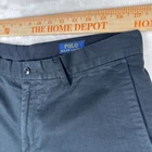 These Polo Ralph Lauren pants are black chino pant for men in size 33x32. They feature a flat front, slim fit, and stretch fabric for comfort. The pants have a button closure and a mid-rise waist. Ideal for various occasions such as travel, weddings, parties, casual outings, workwear, or business attire. Made of cotton with a straight leg style, they are suitable for all seasons.