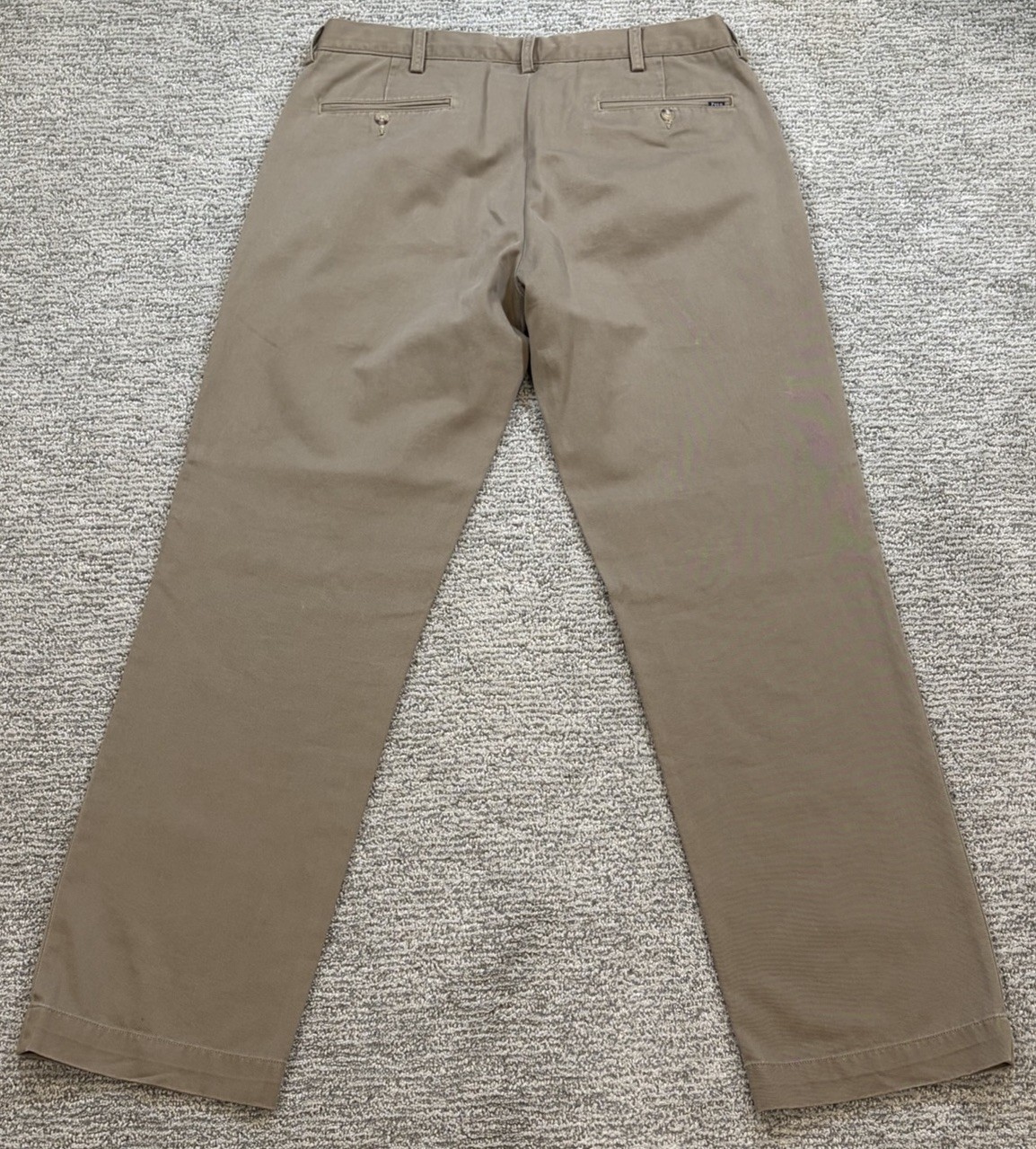The Polo Ralph Lauren Mens 34x32 Khaki Classic Fit Chino Pants are a timeless and versatile wardrobe staple. Made from quality cotton twill fabric, these pants feature a solid beige color and a flat front design for a sophisticated and classic look. With a mid-rise and straight leg style, they offer comfortable and flattering fit for both casual and business occasions. Easy to care for with machine washable instructions, these pants are a stylish addition to your closet for the winter, fall, and spring seasons.