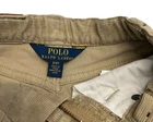 These Polo Ralph Lauren pants are a stylish addition to any toddler's wardrobe. Made from corduroy fabric in a solid tan color, they feature an adjustable waist for a comfortable fit. Perfect for various occasions such as travel, parties, or casual wear, these pants have a button closure and straight leg opening. With a classic designer theme and a touch of colorful holiday cheer, these pants are sure to keep your little one both stylish and comfortable throughout the winter, fall, or spring seasons.