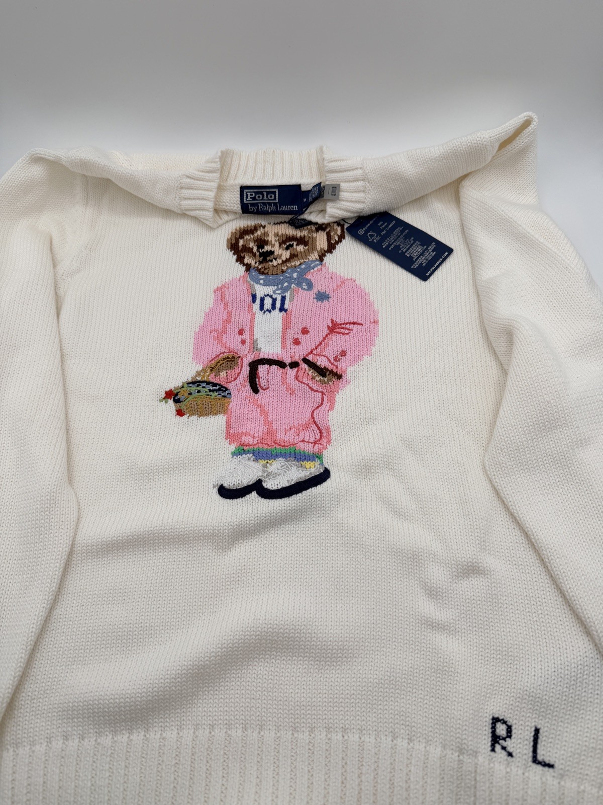 Indulge in the timeless charm of Polo Ralph Lauren’s most iconic motif — the Polo Bear. This elegant crewneck sweater blends heritage craftsmanship with effortless sophistication, making it a collectible piece for every wardrobe. Expertly knit from 100% soft cotton , it showcases the beloved Polo Bear dressed in classic Ralph Lauren style, meticulously embroidered across the chest for a textured, high-end finish. Features Brand: Polo Ralph Lauren Style: Polo Bear Crewneck Sweater Size: Women’s Medium Color: Crisp White Material: 100% Cotton Condition: Brand New with Original Tags Design Details: Signature embroidered Polo Bear at front Ribbed crew neckline, cuffs, and hem for a tailored silhouette Mid-weight knit ideal for layering or standalone wear Timeless design — pairs effortlessly with denim or skirts