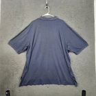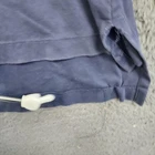 Brand: Polo Ralph Lauren Item: Mens short sleeve polo shirt with classic ribbed collar and two-button placket. Color: Faded navy blue with multicolor embroidered Polo pony logo on left chest. Size on tag: 3XLT Tall Details: Side vents at hem, straight bottom hem, knit sleeve cuffs, casual everyday style big & tall polo shirt. Flaws/Notes: Hem stitching is coming loose with multiple long dangling threads around the bottom and at side vents, with a small split or separation at one side vent. Fabric shows overall wash wear and fading. There are several faint darker spots on the front and a few small light marks and a tiny hole or pick on the back. See photos for close-ups of wear and condition.