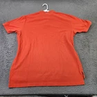 Brand: Polo Ralph Lauren. Style: Mens short sleeve collared polo shirt in classic pique knit. Color: Solid orange body with contrasting blue embroidered pony at left chest. Size: Mens XL (interior neck label marked XL). Material: 100% cotton knit fabric, made in Philippines per interior tag. Construction: Medium-weight breathable pique cotton with a regular fit suitable for casual everyday wear. Design details: Rib knit polo collar, two-button front placket, short sleeves with rib knit cuffs, straight hem with side vent slits, and slightly extended back tail. Branding and labels: Woven navy Polo by Ralph Lauren neck label with size tab, and small woven tag reading Made in Philippines 100% Cotton, plus signature embroidered polo player logo at the left chest. Features and use: Classic cotton pique polo shirt ideal for golf, business casual outfits, or relaxed weekend wear.