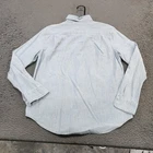 Polo Ralph Lauren shirt in boys size Large 14-16 with a blue long sleeve button-front collared silhouette designed for casual wear and layering. Tag details: Interior neck label shows POLO RALPH LAUREN branding and size L (14-16) text. Color and fabric: Light blue chambray-style woven fabric with subtle texture throughout for a classic denim-inspired look suitable for everyday wear. Features: Point collar, full button-front placket with light buttons, long sleeves with button cuffs, back yoke with pleats, and curved shirttail hem for comfortable movement and easy layering. Design details: Two front chest patch pockets with button closures, left pocket featuring a small woven POLO logo tab for subtle branding. Additional details: Inventory sticker labeled '6571' is attached at the upper back as pictured. Use: Versatile boys button-up shirt suitable for school, casual outfits, or layering over tees; please review all photos for additional visual details and confirmation of style and design.