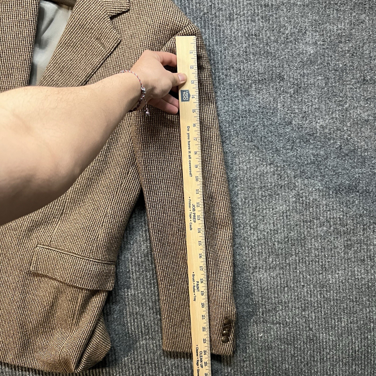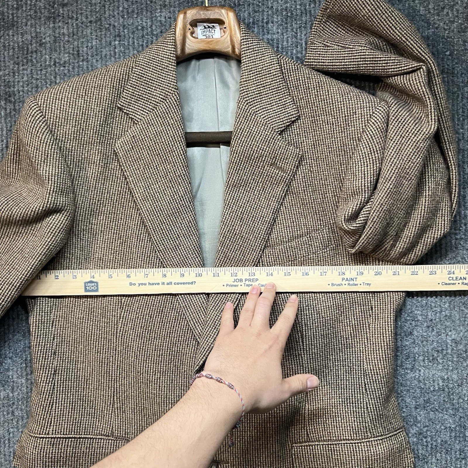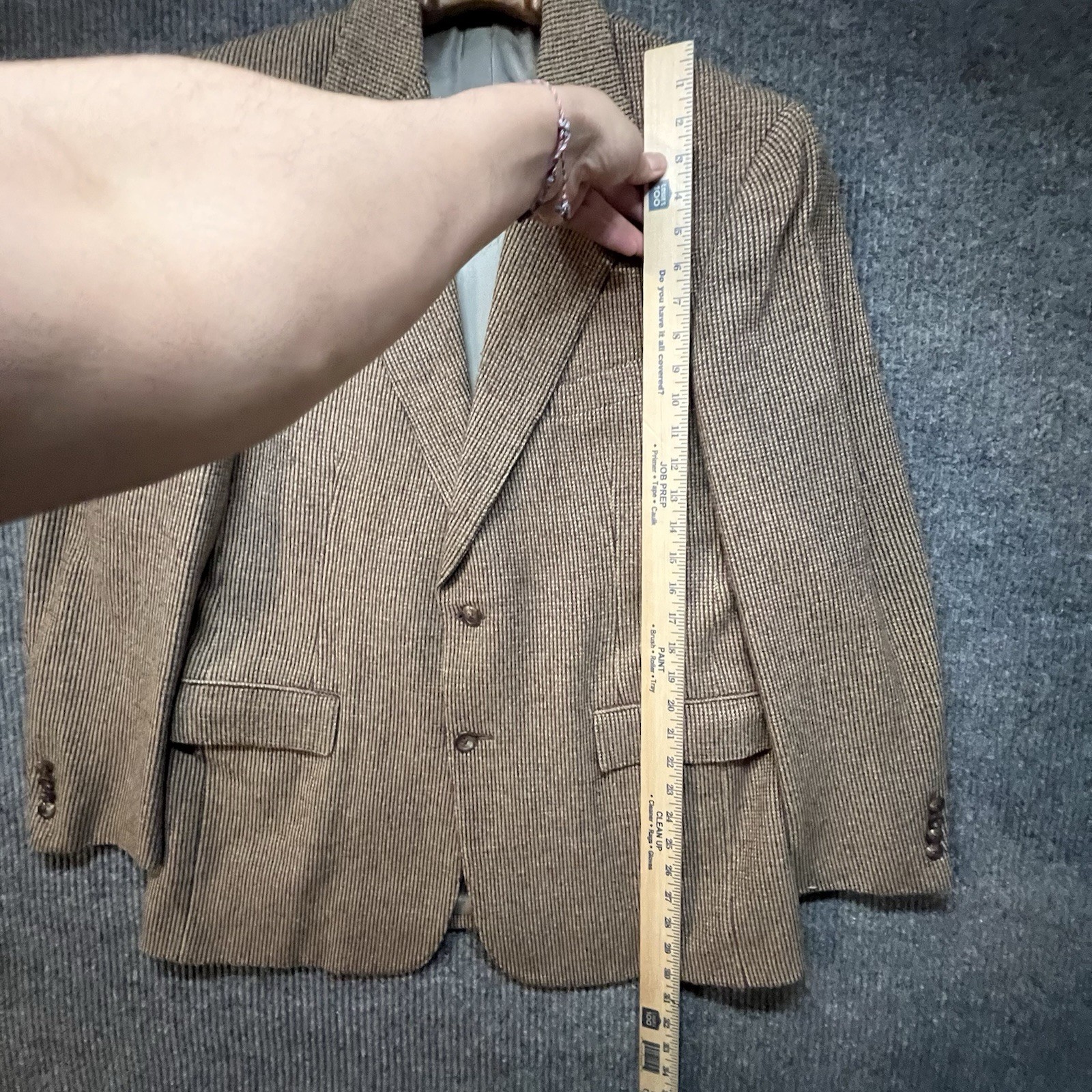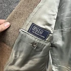 This Polo Ralph Lauren Tweed Blazer Jacket is a stylish and classic piece of men's clothing in a size 40 regular fit. Made in the USA, the brown tweed fabric adds a touch of sophistication to the 2-piece design. Perfect for a dapper and put-together look, this blazer embodies the timeless elegance and quality associated with the Ralph Lauren brand.