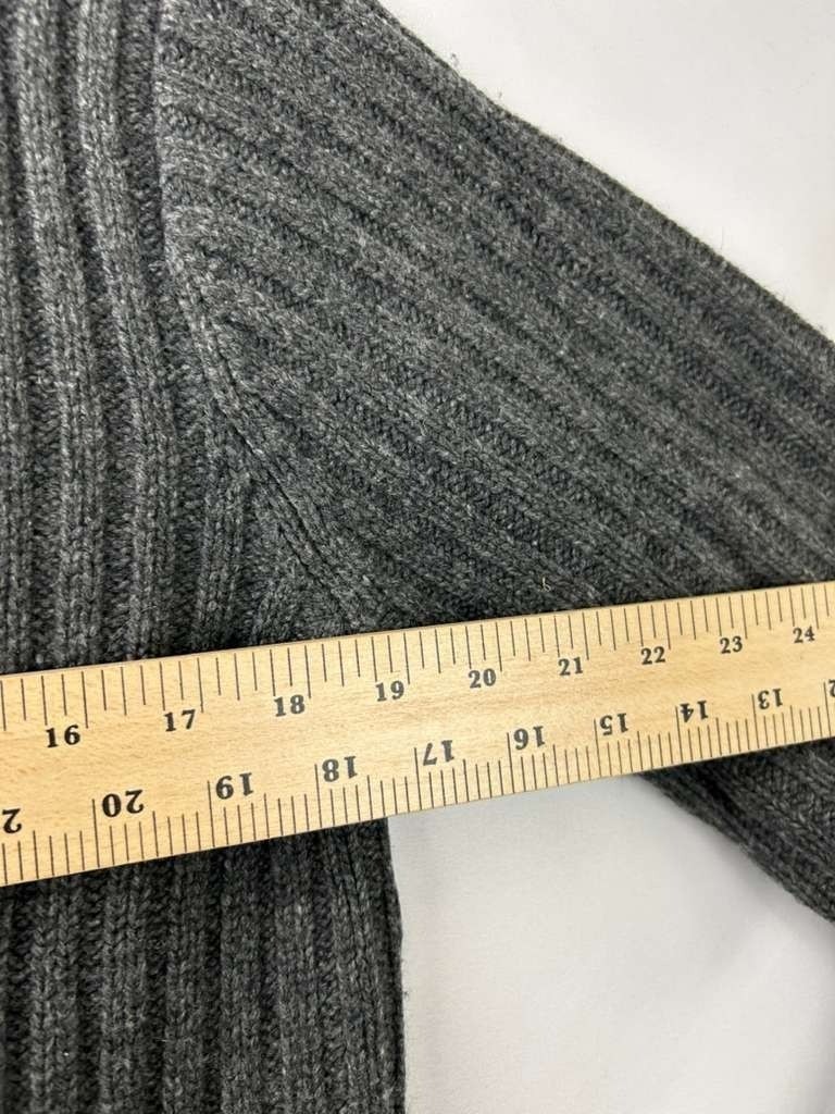 Important: Few slightly dirty areas(see photos). The Polo Ralph Lauren Women's M Ribbed Cashmere & Lambswool Blend Sweater Crew Neck is a stylish and versatile piece for any wardrobe. Made from a luxurious blend of cashmere and lambswool, this sweater features a classic crew neckline and long sleeves, making it perfect for both casual and workwear occasions. The tight-knit design adds a touch of texture, while the solid gray color and cable character give it a sophisticated and timeless look. Ideal for all seasons, this sweater is a must-have for those who appreciate quality and classic style.