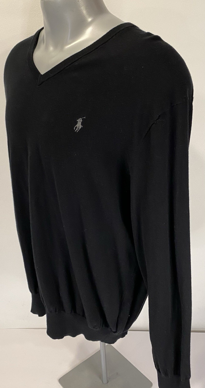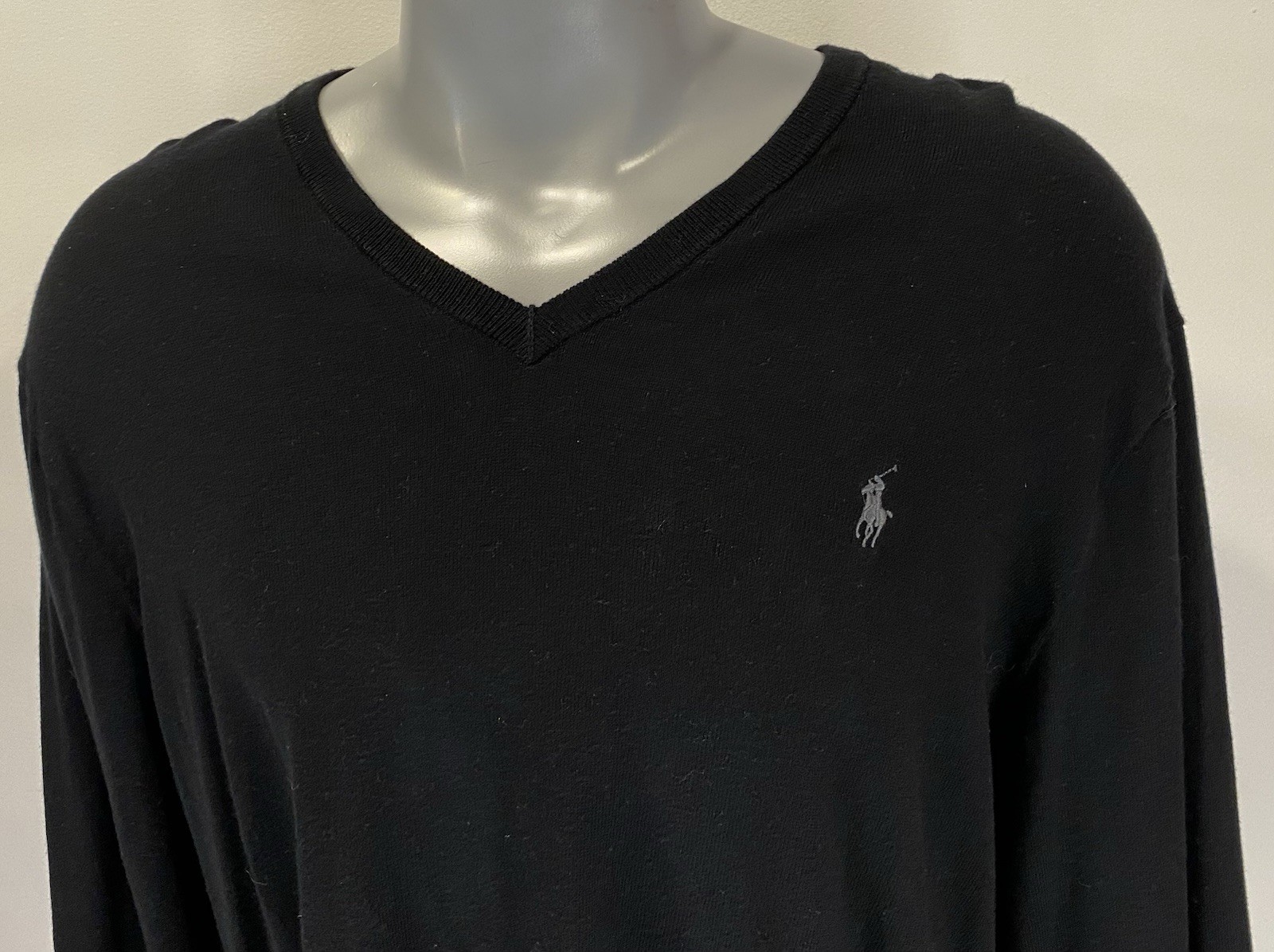 POLO RALPH LAUREN PIMA COTTON MENS V-NECK SWEATER BLACK WITH GRAY LOGO XL MEASUREMENTS: 24 INCH (PIT TO PIT) 29 INCH LENGTH 25 INCH SLEEVES VIEW ALL OF THE PICTURES! *************************************************************** *We specialize in providing our Customers with High End, Brand Name Designer Clothing at an Affordable Cost....regardless of whether it's brand new or pre-owned. Our goal is for customer satisfaction!! If you have any questions or concerns feel free to reach out and contact us! P6 All Pre-Owned Clothing is Properly Cleaned & Laundered as per ebay policy standard