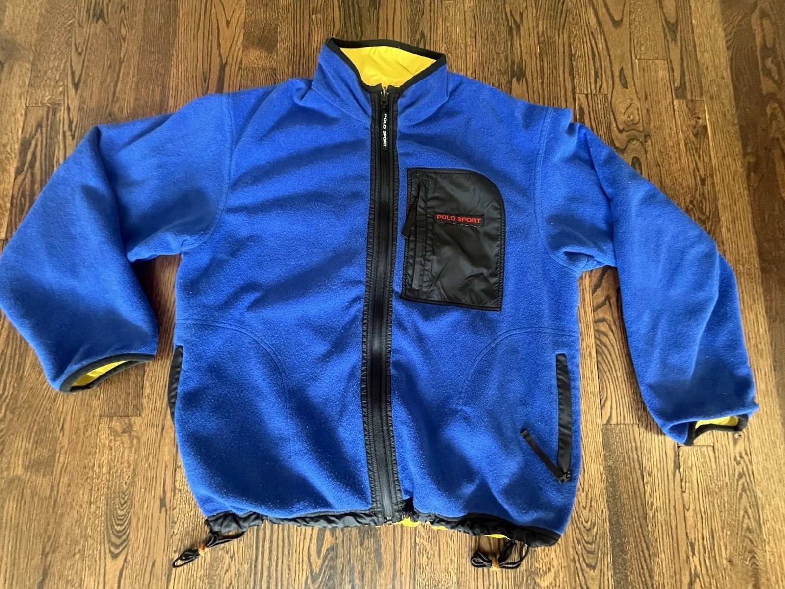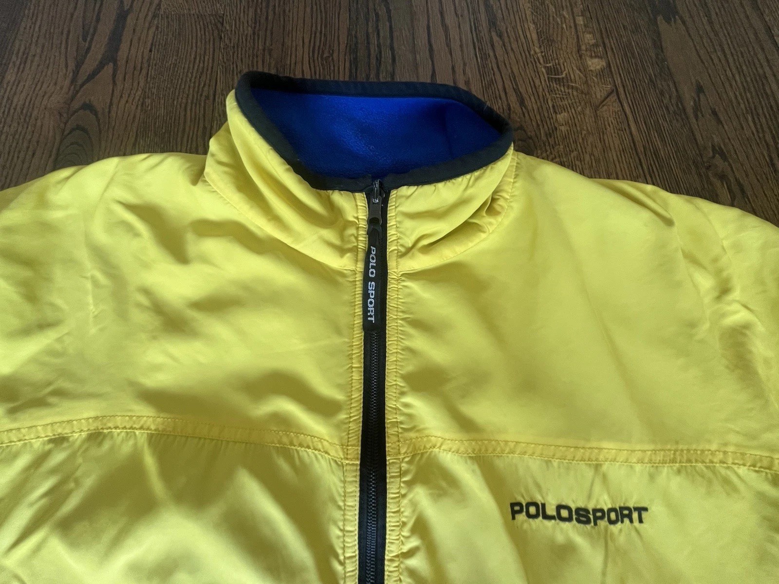 The Polo Sport Ralph Lauren Y2K Mens Reversible Windbreaker/Fleece Lined Jacket in XL is a stylish and versatile outerwear piece perfect for various occasions such as travel, casual wear, and workwear. Made of durable nylon with a cozy polyester lining, this jacket features a solid multicolor design with embroidered logo accents. The reversible feature adds a unique touch to the jacket, making it a fashionable choice for those looking for a retro-inspired windbreaker with a hint of 80s, 90s, and hip hop style. Ideal for colder weather, this jacket is prone to walking, golf, and hiking activities.