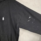 The sleeve has a paint mark and a couple of bleach spots(photo,left sleeve). Still in good condition.