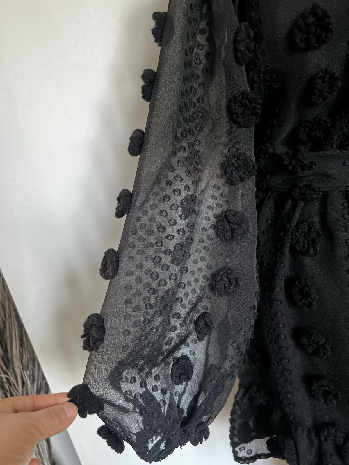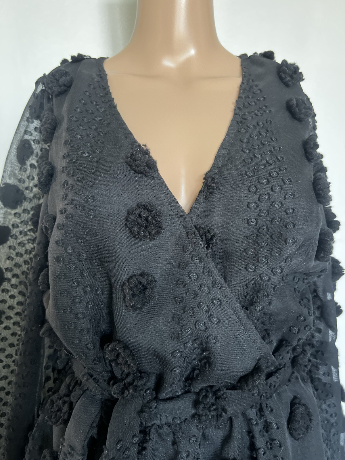 The Polyester mini dress by Flying Tomato is a stylish black textured wrap dress perfect for parties, cocktails, or casual wear. With long sleeves and a short dress length, this dress is made from polyester and should be hand washed. The solid pattern and wrap style make it a versatile piece suitable for various occasions during the summer, fall, and spring seasons. Its size M and regular fit make it a great addition to any woman's closet for those looking for a chic and comfortable option.