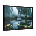 Tranquil Green Oasis: Framed HDR Landscape Canvas Product Description: Transform your space with " Tranquil Green Oasis " a serene green-dominant landscape illustration by Hypnotik Creations. Featuring a tranquil pond surrounded by lush grassy fields, vibrant wildflowers, and majestic weeping willow trees, this moody nature scene captures the essence of peace and harmony. A charming wooden bridge and floating water lilies add a touch of rustic elegance, making this artwork a true escape into the wonders of nature. Expertly printed in HDR on museum-quality cotton-polyester composite canvas, this piece showcases vibrant colors and intricate details enhanced by a proprietary matte finish coating that ensures long-lasting brilliance. Using UL-certified Greenguard Gold latex inks that are non-hazardous, non-toxic, and non-flammable, this artwork is as eco-conscious as it is stunning. The canvas is framed with a 1.25" solid pine wood floating frame available in a sleek black finish. Sustainably sourced and Forest Stewardship Council certified, the frame adds a modern aesthetic while supporting environmentally friendly practices. Ready to hang straight out of the box with pre-attached sawtooth hardware, rubber dots at the base ensure the canvas stays securely in place on your wall. This timeless piece of art is perfect for adding a touch of natural beauty to your living room, bedroom, or office. Please note that slight size variations (tolerance +/- 1/8") may occur due to the production process. Dust and maintain effortlessly with a gentle wipe using a clean, damp cloth. Key Features: Nature-Inspired Design: Features a serene pond surrounded by weeping willows, wildflowers, a wooden bridge, and floating lilies, creating a calming and moody atmosphere. HDR Printing Excellence: Printed on museum-quality cotton-polyester composite canvas with vivid colors and intricate detail, enhanced by a proprietary matte finish coating for durability and brilliance. Eco-Friendly Inks: Produced using UL-certified Greenguard Gold latex inks that are non-toxic, non-hazardous, and non-flammable, ensuring vibrant, safe, and eco-conscious artwork. Sustainably Sourced Frame: 1.25" solid pine wood floating frame available in black, certified by the Forest Stewardship Council for eco-friendliness. Ready to Hang: Equipped with sawtooth hanging hardware for easy installation and rubber dots for stability on your wall. Low Maintenance: Dust-resistant and easy to clean with a gentle wipe using a damp cloth. Slight Size Variations: Due to the handmade production process, size tolerance is +/- 1/8" (3.2 mm). Size Options: 30x20, 36x24 & 48x32. Enhance your interior with this breathtaking " Tranquil Green Oasis " canvas, a timeless celebration of nature that brings tranquility and charm to any space. * Shipping to Alaska, Hawaii, and unincorporated territories of the United States can take additional 7 ? 12 business days, weather permitting.