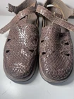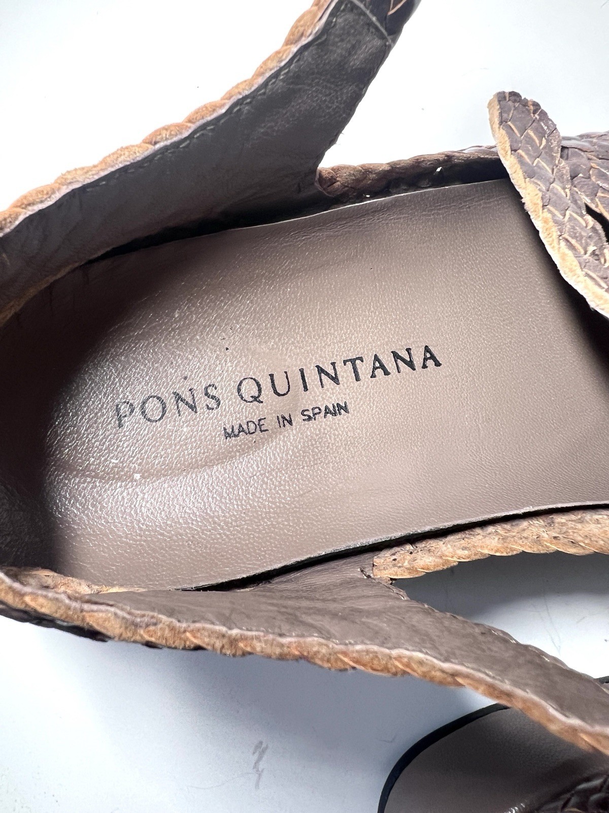 Pons Quintana Women’s Brown Woven Leather Sandals – EU 41 / US 10.5 These stylish and high-quality PONS QUINTANA sandals are handmade in Spain, combining timeless design with superior craftsmanship. Details: • Size: EU 41 (fits approx. US Women’s 10.5 / AU 10) • Color: Chocolate Brown • Material: 100% Genuine Leather Upper & Insole • Sole: Rubber with signature heart pattern • Closure: Adjustable Buckle Strap • Condition: 9 /10 – Worn only a few times, soles show minimal wear, almost like new • Made in Spain – Code 76576327641 stamped inside to verify authenticity Features: • Classic woven leather upper, stylish and breathable • Comfortable cushioned insole for all-day wear • Durable rubber sole with unique heart pattern for added charm • Artisanal Spanish craftsmanship – elegant and hard to find in this size and condition Perfect for spring and summer wear — versatile, durable, and a chic addition to any wardrobe.