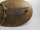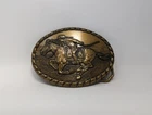This vintage belt buckle is a must-have for collectors of Western Americana. Made by Mervyn's in 1981, it features a design of a Pony Express rider and commemorates the legacy of this iconic mail delivery service. The buckle was crafted in the United States and has a unique charm that will add character to any belt. Thanks for looking!