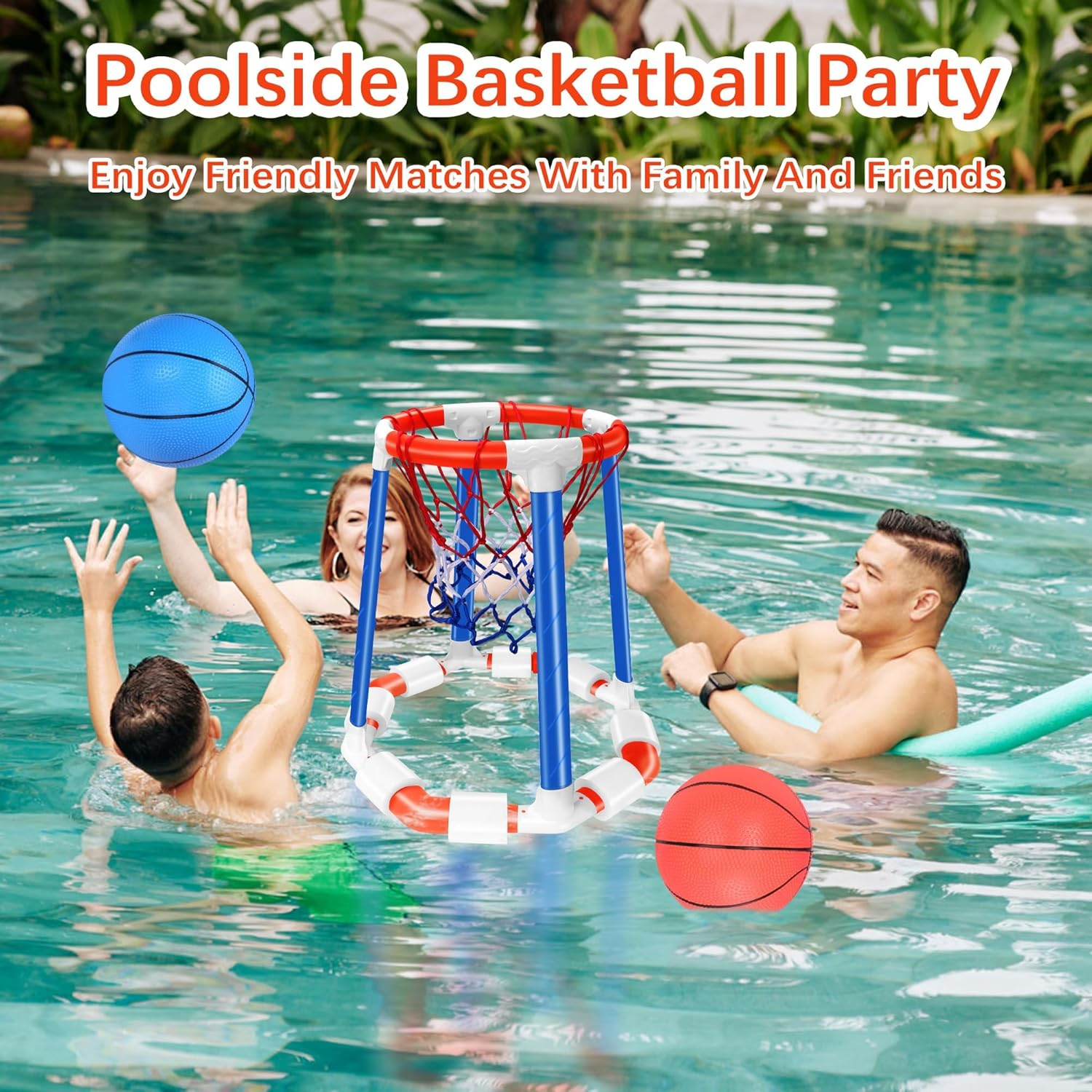Exciting Pool Basketball Hoop for Summer Fun: Jump into action with our floating pool basketball hoop! This pool basketball set turns any swimming pool into a mini court, bringing endless excitement for pool games and friendly competitions. Durable and Lightweight Basketball Hoop for Pool: Made from high-quality, non-toxic materials, this basketball hoop is built to last. Its strong frame ensures stability in the water, making it perfect for intense pool basketball matches both indoors and outdoors. Perfect Pool Toys for Kids Ages 8-12 and Families: Ideal for pool-loving kids ages 8-12, teens, and even adults, these pool toys encourage active outdoor play, improve hand-eye coordination, and create unforgettable moments with family and friends. Fun Pool Games for Adults and Kids Alike: Whether you're hosting a backyard pool party or relaxing on a sunny afternoon, our basketball hoop adds excitement to pool games for adults and kids, creating unforgettable summer memories. Quick Setup and Portable Entertainment: This easy-to-assemble basketball hoop for pool requires no tools and is lightweight for effortless transport. Enjoy pool basketball anywhere—at home, at the beach, or indoors for year-round fun!