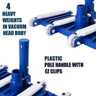 Vacuum Length Material Color Shape Wheels Handle Features 14 INCH High-gra de plastic thickening and aggravating Blue & White Rectangle 4 on each side Blue plastic handle Button&Side Brushes POOL VACUUM HEAD This 14” suction head is equipped with bristles on the bottom and side. You can scrub the bottom of the swimming pool, landscape pool, and fishing ponds while sucking the dirt, which is convenient and time-saving. HIGH EFFICIENCY It is usually difficult for the pool suction head to suck the dirt at the bottom and walls of the swimming pool. With this dirt suction head, this problem can be solved. The side brush can brush off the dirt in the corner, and the dirt suction head can easily suck off the brushed dirt, so the pool can be cleaned without dead ends. EASY TO MANEUVER Smoothly rolls on hardy, plastic wheels. Ideal for concrete, pebble bottom, or fiberglass pools. CONVENIENT This 14 inch dirt suction head is portable, convenient for dirt suction. It is non-deformation and durable, suitable for swimming pool with a width of less than 49.2ft. UNIVERSAL FIT Fits standard 1.5" vacuum tubes and standard 1.25" telescoping poles. HOW TO USE Connect the sewage suction head directly to the sewage suction pipe (NOTE: Connect to the joint that can be rotated), and put the telescopic rod into the special joint of the sewage suction. Pool Vacuum Head for Above Ground Pools This suction head is a 14-inch plastic suction head with bristles, a plastic handle, and brushes on the bottom and sides. It can scrub the bottom of the pool when absorbing dirt, which is flexible and convenient.