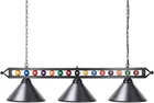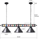 Pool Table Light, 59” Billiard Pool Table Lights for 7' 8' 9' Table,Billiard Lights Over Pool Table Lighting Fixture with Billiard Ball Decor for Man Cave,Game Room,Kitchen Island ☆ Stylish Design: The 3 Light pool table light feature premium metal that with strong anti-rust and corrosion resistance, colorful billiard ball on the load-bearing. The stylish design revealing the elegance and delicacy ☆ Dimension: Fixture size of inch× inch × inch; Chain length of inch (Adjustable), Lamp shade size of inch × inch, suitable for 7 feet to 8 feet pool table ☆ Brightness: Whether you’re shooting pool in the game room or prepping dinner on the kitchen island, this billiard lamp keeps your favorite spaces looking on the bright side. Note: 3* E26 bulbs not included ☆ Applicable Scene: This pool table light with different scenes can have different effects. Suitable for billiard room, game room, bar, restaurant, cafe, dinning room, bed room etc ☆ Safe and Secure: Hardwired. Assembly required, with mounting hardware and a detailed mounting instructional manual made it is easy to install(NOTE: Full Assembly Required with time and effort) ☆ Note: The billiard balls are only for decoration, They are custom made and a little smaller than normal Better Life You deserve it We are committed to providing our customers with a warm and bright indoor environment.