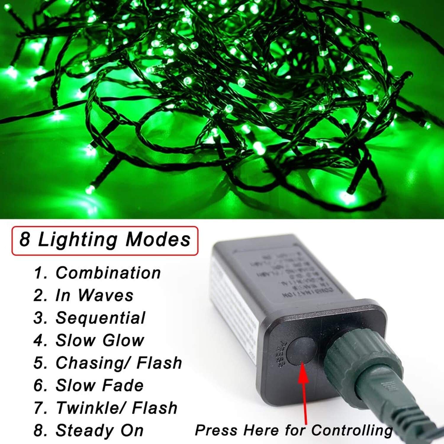 Pooqla Green String Lights Halloween Decoration, 200 LED 66 ft Indoor Outdoor LED Green Lights, 8 Modes Twinkle Fairy Lights for Yard Patio Wedding Party Christmas Xmas Tree Decoration Product Details Color: Green wire, Green Brand: Pooqla MPN: LR-(1-1000) L-SL01 UPC: Does not apply EAN: Does not apply Color: Green wire, Green Brand: Pooqla Indoor/Outdoor Usage: Outdoor, Indoor Special Feature: 防水 Light Source Type: LED Power Source: Corded Electric Light Color: Green Theme: Christmas, Halloween Occasion: Wedding, Christmas, Halloween Style: Modern Package Dimensions : 6.81 x 4.13 x 4.09 inches; 1.23 Pounds Item model number : LR-(1-1000) L-SL01 Date First Available : July 13, 2021 Manufacturer : NINGBO YINZHOU LANGFU ELECTRONICS CO LTD Country of Origin : China Customer Reviews: 4.7 4.7 out of 5 stars 999 ratings Color: Green wire, Green Brand: Pooqla Indoor/Outdoor Usage: Outdoor, Indoor Special Feature: 防水 Light Source Type: LED Power Source: Corded Electric Light Color: Green Theme: Christmas, Halloween Occasion: Wedding, Christmas, Halloween Style: Modern Material: Polyvinyl Chloride Controller Type: Button Control Number of Light Sources: 200 Voltage: 1.1E+2 Volts Included Components: '1x 200 LED String Lights', '1x UL Plug with Control Button', '1x Manual', '12-month friendly customer service and 24 hours email response' Number of Items: 1 Control Method: Touch Water Resistance Level: Waterproof Seasons: autumn, winter Form Factor: String Manufacturer: NINGBO YINZHOU LANGFU ELECTRONICS CO LTD Part Number: HU-XI-113 Item Weight: 1.23 pounds Package Dimensions: 6.81 x 4.13 x 4.09 inches Country of Origin: China Item model number: LR-(1-1000) L-SL01 Special Features: 防水 Batteries Included?: No Batteries Required?: No Date First Available: July 13, 2021 Extendable Christmas Lights Outdoor: End-to-end connection design increases the coverage of the led mesh lights. Connect up to 5 sets. Each lamp provides a separate 16.4 ft extension cord. Each string light is of 200 LED, 66 ft LED Outdoor String Lights: IP44 Waterproof, well string light for indoor & outdoor decoration. Designed with clear wire, which can be well hidden in shrubs or trees. The power adapter is not waterproof, please keep it dry when used outdoor High Quality: Made of high quality PVC plastic, flexible. Super bright and low power consumption LED light. Package Include- 1x 200 LED String Lights; 1x UL Plug with Control Button; 1x Manual Widely Application: The string light can be easily use on your front yard, garden, roof, ceiling, terrace and irregular bushes. A perfect light decoration to Halloween, Christmas, party, wedding, home, window, festival, shows, restaurant, shopping center