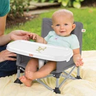 About this item Bright Starts Pop N Sit is the ultimate go & grow seat! 3 modes of use: floor seat, feeding seat with removable tray, and toddler booster; great for days out, evenings in, weekend trips & more Safe for indoor and outdoor use. Pull up a seat for park picnics, camping trips, and visits to grandmas house; includes a carrying bag with shoulder strap to bring along on all your adventures Compact chair easily folds to 5 x 15 inches; easy to clean with dishwasher safe tray and machine washable seat pad; includes a rear storage pocket for little essentials Gender neutral grey design; includes 3-point safety harness, BPA free tray, and safety straps for attaching to adult chair; rated for ages 6 months to 3 years or up to 33 pounds A must-have item for parents on the go, grandparents & more! Great gift idea for baby showers, birthdays, Christmas, and other gifting occasions; no tools required for assembly