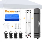 Pop Up Canopy Tent with Wheeled Carry Bag, 8 Stakes, 4 Ropes, 4 Weight Bags, ...