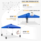 EASY SETUP: This easy setup pop up canopy tent features the Peak Push system, a patented canopy center lock. The portable canopy requires no tools and easily opens and closes from the center in seconds. Its unique canopy tent center lock enables a quick, one person setup, letting you maximize outdoor time with minimal effort VENTED TOP: The large Peak Vent provides enhanced ventilation, allowing warm air to rise and flow out of the canopy, keeping you cooler and more comfortable. The CPAI-84 rated 150D oxford top is water-resistant and offers UPF 50+ UV protection SUPERIOR QUALITY: 150D silver coated oxford canopy top is water-resistant, offers UPF 50+ UV protection, and meets CPAI-84 flammability standards. The frame is high-grade, powder-coated steel, with hardened through-bolts for years of reliable use COMPACT AND PORTABLE: Easily take this outdoor tent anywhere with its convenient wheeled bag which fits into most car trunks. Easily bring it along to tailgate and backyard parties, the beach, camping, the park or wherever your fun begins PROMISE: offers 1-year limited after sale protection from the date of purchase. Unlike many other canopy sellers, offers this for our frames, tops and bags! Please contact our professional service team with any questions.