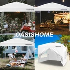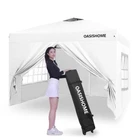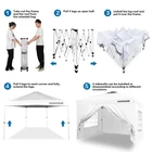 Thicker steel anti-rust coating frame, with legs width 28mm, and cross-bar width 28x12.8mm for the top bracket, sturdy and durable. 150 deniers high-density fabric water-resistant canopy roof, with silver-plated PU lining, can block 99% of harmful rays of sunlight (note: the canopy top looks with color silver not as pure white). The sturdy frame is designed to be easily open and easily fold via its super convenient thumb latch button system. Set up is so easy, to finish the entire assembly work only needs two persons and takes a few minutes without tools. Take out the frame and the roof from the wheeled bag and unfold it ajar, unfold the top roof and put it over the frame, then pull 4 legs to each corner end fully, extend the legs, and 4 sidewalls can be installed or disassembled according to different occasions. Three different sidewall height settings, 72 inches, 76 inches, and 80 inches, more headroom for inside activities. Portability, this tent comes with a bonus roller bag with heavy-duty wheels, made of 600 deniers coated PVC fabric, put into a vehicle effortlessly and take to any place. It also can be a storage bag for the canopy tent without occupying space. What is included, 10x10 Ft pop-up frame; 10x10 Ft top roof; 4 removable high-density fabric sidewalls, 2 of that are with zippers as doors, and 2 of that are with windows for view; bonus 1 upgraded durable carry bag; 8 tent stakes; and a set of ropes. Multiple uses, this canopy provides 10'x10' shade coverage, big enough for 6-8 people with a table inside at the same time. It is suitable for patio, backyard, garden, wedding party, beach, outdoor sports, trade show, art event, camping, disaster relief, and more. Reminder, to prolong the service life of the canopy tent, please do not use it in strong wind, heavy rain, snow, storm, and bad weather accordingly.