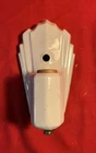 Add a touch of vintage charm to your home with this beautiful porcelain wall sconce. The Art Deco style fixture is perfect for any bathroom or kitchen, and the shiny white finish will match any decor. This wall sconce has been rewired and is ready to go. It is, however, a salvage piece, so sold AS IS. It will require a wall mount bolt in bracket.. The sconce is from the 1940s and has a timeless look that will make any room feel elegant and sophisticated. The antique piece has been well-maintained and is in excellent condition, ready to add character to your home.