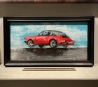 Original attractive RED / Guards Red or Continental Orange PORSCHE 911 Targa in Motion. This painting is capturing one of the best Classic Historic German Car. It is Unique traditional painting with bold brushstrokes. The artwork executed on acid free stretched cotton canvas. This Porsche 911 painting coming framed to customer and ready to be hanged. Overall framed dimensions are 12”x22”x3/4” It is original traditional artwork for automotive art collectors item is unique and handmade and it is not a print or a copy or a photograph. Free domestic shipping with insurance and tracking number provided via USPS.