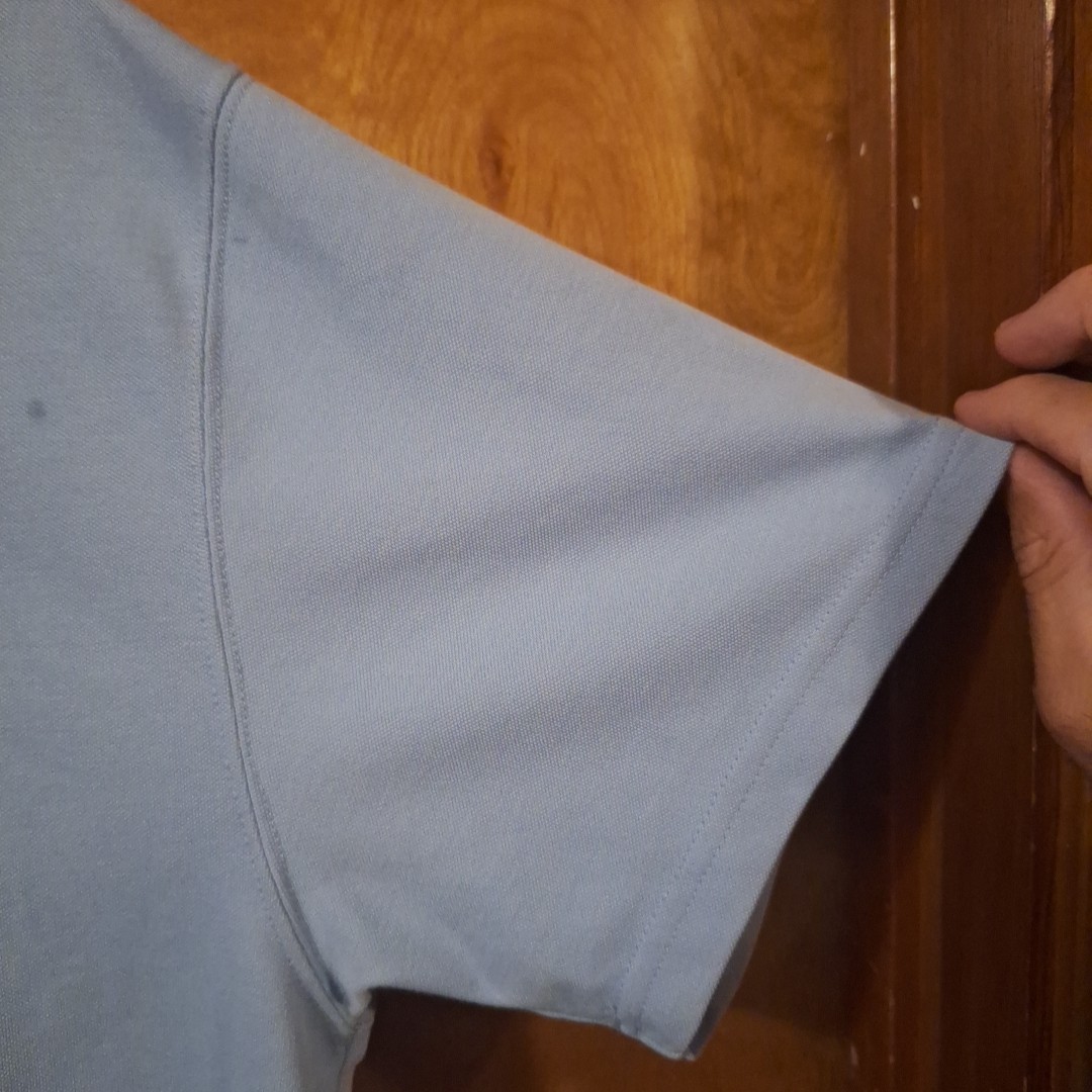 This Port Authority Palm Beach Yacht Club Embroidered T-shirt in light blue is a stylish and comfortable choice for men. Made from cotton, this regular fit shirt features a classic crew neck and short sleeves, perfect for casual wear. The embroidered accents add a touch of sophistication, making it a versatile addition to any wardrobe. Ideal for those who appreciate quality and attention to detail, this t-shirt is a great choice for those looking for a unique and fashionable item. T-shirt is used and has a few small dark spots on it. Not sure if that is from the factory but they are dark blue. Please see picture for further details.