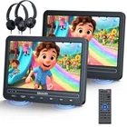 【5-hour Playing Time】With a built-in 2500mAh rechargeable Li-ion battery, these dual-screen portable DVD players support up to 5 hours of solo playback and 2.5-3 hours of sync playback after one full charge. AC power adapter and Car Charger are included in the package, the perfect rear seat entertainment system for long-time travel or daily use at home. 【Sync Playback on Both Screens】With the AV cable (included in the package), you can connect the host DVD player and slave monitor to play the same movie or video (Do not support separate playback). 【Dual Louder Speakers】Built-in 2 upgraded stereo speakers on each unit provide you with louder and clearer stereo sound, so you can hear every detail of the movie. Each unit also owns a 3.5mm headphone jack to connect with headphones (included) o Key Features: Ø 【5-hour Playing Time】With a built-in 2500mAh rechargeable Li-ion battery, these dual-screen portable DVD players support up to 5 hours of solo playback and 2.5-3 hours of sync playback after one full charge. AC power adapter and Car Charger are included in the package, the perfect rear seat entertainment system for long-time travel or daily use at home. Ø 【Sync Playback on Both Screens】With the AV cable (included in the package), you can connect the host DVD player and slave monitor to play the same movie or video (Do not support separate playback). Ø 【Dual Louder Speakers】Built-in 2 upgraded stereo speakers on each unit provide you with louder and clearer stereo sound, so you can hear every detail of the movie. Each unit also owns a 3.5mm headphone jack to connect with headphones (included) or external speakers for various listening experiences. Ø 【Support USB and SD Card】With built-in USB port and SD card slot, the DVD player for car allows you to play all of your downloaded media (VOB, AVI, MPEG1, MPEG2, XVID, MPG, 3GP, MP3, WMA, JPG, JPEG), you can enjoy your videos, music, and photos on the road. Ø 【Region Free & Last Memory】No restriction for discs from all regions: CD, DVD, CD-R/RW, DVD±R, DVD±RW, VCD, SVCD, etc (Blu-Ray not Supported). The Last Memory function keeps your viewing progress and always starts from where you leave off. Enjoy all your collections from now on! Technical Specification: Screen Size: 10.5 inch HD TFT LCD Screens Resolution:1024*600 LED back light Supported Formats: DVD/SVCD/VCD/CD/MP3/JPG/AVI/AVI/MPEG/DIVX Battery: 1 Lithium Polymer batteries required. (included) Charging Time: more than 6 hours Playing Time: the main player can keep running for 5 hrs, or the both monitors could work together for about 2.5-3 hrs Box size: 15.9 x 9.7 x 5.4 inches Gross weight: 5.49 Pounds Package 1x DVD player 1x LCD monitor 1x AC adapter 1x Car charger 1x IR Remote control 1x DV cable 1x AV cable 1x User manual 2x Mounting Strap 2x Headphones