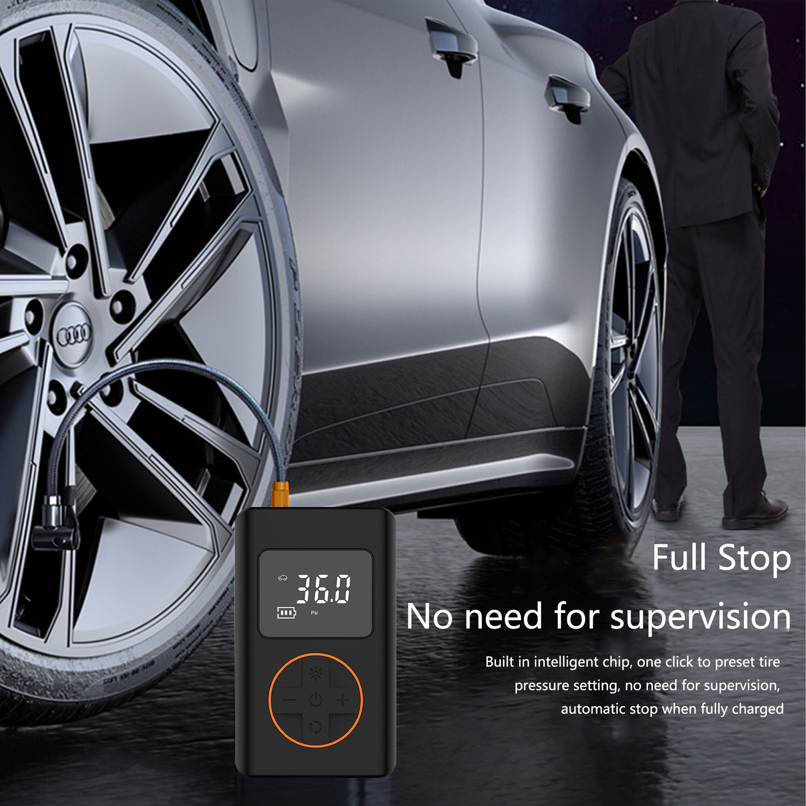 This mini air pump is a lifesaver for quick tire inflation! It's compact yet powerful, reaching 150 PSI in just 8 minutes. The built-in battery lasts long enough for multiple tires, and the included nozzles make it versatile. Perfect for emergencies or regular top-ups—lightweight, easy to use, and reliable. A must-have for every car owner!