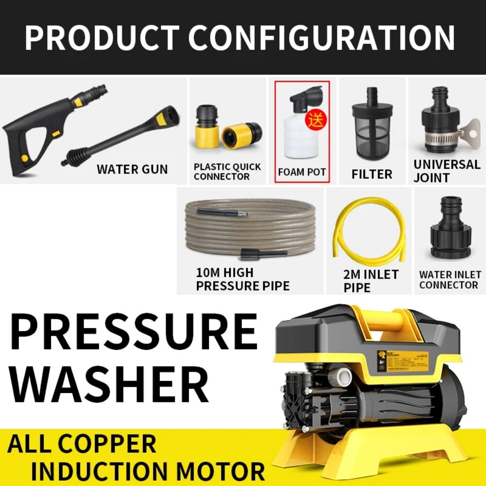 eBay MGN-X1 Home Ca r Wash Machine Portable Car Wash Artifact 220V High-pressure Automatic Car Washing Machine Water Gun 350L/H Name: High Pressure Washer Model: MGN-X1 Power: 760W Voltage: 220V Motor: All copper induction motor Size: 31*15.5*25cm Bearing pressure: 40mpa Peak power: 2000W Peak flow: 350L/H Peak pressure: 8mpa