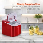 - Makes approximately 9 ice cubes per cycle and up to 27 lbs. of ice per day - Just add water and select desired size to make ice in as little as 7 minutes - Choose between small or large ice cubes to complement any beverage - Streamlined usability via easy-to-use control pad with indicator lights - View the ice level at any time using the convenient see-through window - Removable ice basket and handy ice scooper for effortless servings of ice - Unused ice cubes automatically recycle back into the water reservoir - Replenish day-old water using the built-in drain cap to ensure freshness - ETL approved Color: Silver The Countertop Ice Maker can make up to 27 lbs. of ice per day to help provide you with a steady supply of ice. It is just what you need to continuously fill your ice bucket or beverage pitchers when you are entertaining friends and family. Just add water and select the desired size to make ice in as little as 7 minutes. 27-Lb. Portable Countertop Ice Maker in Red Makes approximately 9 ice cubes per cycle and up to 27 lbs. of ice per day Just add water and select desired size to make ice bullet-shaped ice in as little as 7 minutes Choose between small or large ice cubes to complement any beverage Streamlined usability via easy-to-use control pad with indicator lights View the ice level at any time using the convenient see-through window Removable ice basket and handy ice scooper for effortless servings of ice Unused ice cubes automatically recycle back into the water reservoir Replenish day-old water using the built-in drain cap to ensure freshness ETL approved