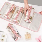 This makeup bag is a game-changer for travel! The 4-in-1 foldable design is genius, with detachable compartments that keep everything organized. The waterproof leather feels premium, and the clear pockets make finding products a breeze. Love how it rolls up neatly but still holds so much. Perfect size for toiletries or makeup, and the pink color is adorable. Super practical with the hanging hook—no more digging through my luggage! Arrived quickly and looks even better in person. Highly recommend for anyone who loves staying organized on the go!