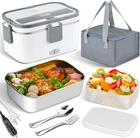 【3-in-1 Electric lunch box】Are you often busy and have to eat cold food? From now on, with our electric lunch box, you can enjoy hot meals anytime, anywhere! This electric heated lunch box supports 110V home/office + 12V car and 24V truck use. You will love this heated lunch box. 【80W Fast heating】Our electric heating lunch box uses an upgraded 80W power supply for heating, once plugged in, the heating lunch box will heat up in 20-30 min. This food heating lunch box is designed with circulating heat to keep your food nutritious and fresh. It not only heats your meals quickly, but is also easy to clean and dishwasher safe.This item is not suitable for children 12 years and under. 【1.8L Super large capacity】1.8L large capacity stainless steel container, you do not need to be hungry.Our food heater lunch box are perfect suited for you! What's more, we provide a 0.45L plastic compartment so you can place different kinds of food separately. There is a and fork on the lid, you can also use it as a cell phone stand to watch movies while eating. 【Leak proof design for you】In order to make the food warmer lunch box better sealed, we designed four sides snaps, plus the built-in rubber seal, you no longer have to worry about leakage of soup.Perfect for students, company office employees, construction workers, trucks and others who want to carry lunch by themselves. 【Warm & Healthy meals】Pls do not wash the electric lunch box as a whole into the water. The portable heated lunch box comes with a insulation bag, don't have to worry about heavy rain and dust, you can carry the lunchbox easily. If the food was taken out of the fridge,the heating time should be extended appropriately. If you have any questions about our electric lunch box, please contact us as soon as possible! Product Description UPGRADE LARGE CAPACITY PORTABLE ELECTRIC LUNCH BOX Say goodbye to greasy fast food, and enjoy fresh, heart-warming, and healthy food anytime, anywhere! The lunch box design can be separated independently, and various foods can be matched at will to achieve balanced nutrition! Enjoy fresh, heart-warming, and healthy food anytime, anywhere! -PRODUCTION SPECIFICATION- DC Power: 12V-60W 24V-80W ; AC Power: 60W/80W ; Voltage: 12-24V ; 110V 60Hz ; 220V 50Hz ; 110V 60Hz/12-24V ; 220V 50Hz/12-24V ; Material: 304 Stainless Steel, PP Material, Rubber ; Capacity: 1.8L for Lunch Box, 0.5L for Fruit Container ; Warm Tips: We recommend adding some stock or water to food before heating, making the food more evenly heated. Don't put lunch boxes in the refrigerator or microwave. Don't immerse the lunch box body in water. Don't add water to the lunch box heated base. Make sure to open the steam port before heating. Remember to unplug the power cord before eating. Any problems while using the lunch box,Please cont~act us. We will provide you the best solution. Please do not repair it by yourself. Home/Car Plugs There are 2 plugs on the portable food warmer, one is a 12/24V car adapter plug, and the other is a 110V/220V home adapter plug. Available anytime, anywhere! 304 Stainless Steel Container Made of food-grade stainless steel, you can use it with confidence. At the same time, it is very easy to clean, it can be rinsed directly in the faucet or put in the dishwasher! Portable Insulated Lunch Bag This lunch bag is lightweight and foldable, Sturdy and durable, easy to carry. Insulated aluminum foil makes the food fresh for hours, it's non-toxic and safe for your food, perfect to pack your foods and lunch containers.