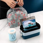 Adult Bento Lunch Box Kit, Bento Boxes Portable Lunch Box, Adult Bento Box with Lunch Bag, Bento Lunch Containers for Women, 1200ml Large Capacity Lunchbox BPA-Free(Blue Metal) Product Parameter Brand: Product Name: Nordic Double Layer Lunch Box Capacity: 40.58 fl-oz / 1200 ml Weight: 1.87 lb / 850 g Material: ABS + PP + Stainless Steel Color: Green/Blue/Pink Product Size: 8.46*4.33*4.53 inch / 21.5*11*11.5 cm Sealing Ring: Yes Applicable people: Adults aged 12 and above Packing: Kraft Paper Box What’s in the box 1*Double Layers Lunch Box 1*Fork 1*Spoon 1*Chopsticks 1*Metal Soup Bowl 1*Milk Cup 1*Lunch Bag 💖 【SAFETY MATERIALS LUNCH BOX】The bento box uses innovative BPA-free food-grade wheat fiber composite material, it creates a safe and healthy eating environment for you. The soup bowl is made of 304 stainless steel, which is resistant to corrosion and rust. While enjoying your lunch, make your lunch more nutritious without any health risks. 💖 【LARGE CAPACITY LUNCH BOX】European minimalist colors and double layers design. The double-layer structure can effectively prevent the taste of food due to tainting by odor. It can hold up to 1200ml of food and is large enough to accommodate the food intake of adults. 💖 【MICROWAVE SAFE LUNCH BOX】Support the use of microwave heating. The lunch box is made of high-temperature, corrosion-resistant, and high hardness materials so that you don't have to eat cold food. Microwave oven high-temperature heating should not exceed 10 minutes to reduce the service life of the lunch box. 💖 【LUNCH BOX WITH UTENSILS】The lunch box is equipped with the original fork, a spoon, and chopsticks. Eating different foods can be used in these utensils, which is suitable for consumers with different food cultures. It is easy to clean, has hidden space, simple use. 💖 【UNIQUE DESIGN LUNCH BOX】The first layer of the lunch box can be used as a mobile phone stand. When you enjoy the food, you can also watch your favorite movies.